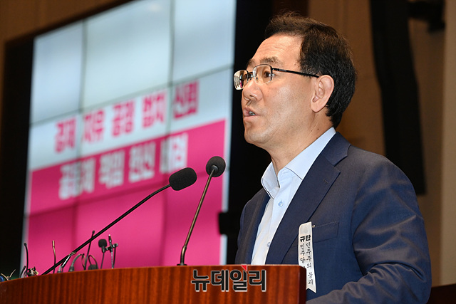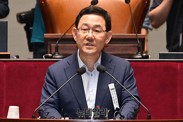 [포토] 주호영 "민주당 독재 강행…릴레이 반대토론으로 대응할 것"