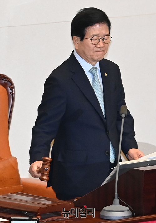 박병석 국회의장이 4일 오후 국회 본회의장에서 열린 제380회 국회(임시회) 제8차 본회의에서 의사봉을 두드리고 있다.