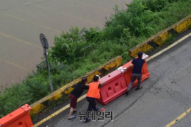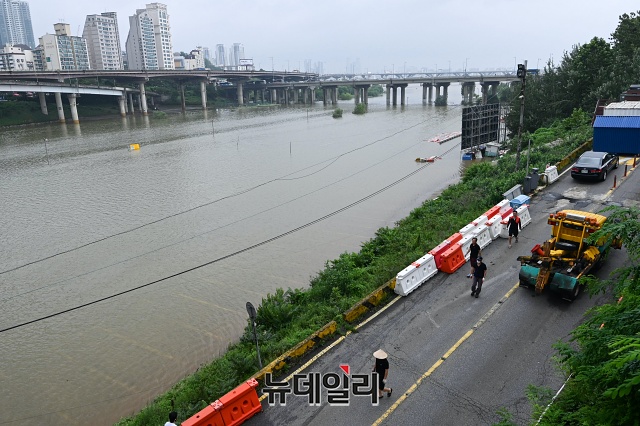 [포토] 집중호우로 시내 곳곳 간선도로 통제..침수된 동부간선도로