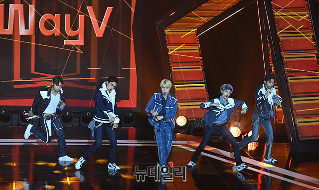 중국 그룹 'WayV(웨이션브이)'가 4일 오후 서울 마포구 SBS 프리즘타워에서 열린 SBS MTV '더 쇼(THE SHOW)' 생방송에서 무대를 선보이고 있다.
