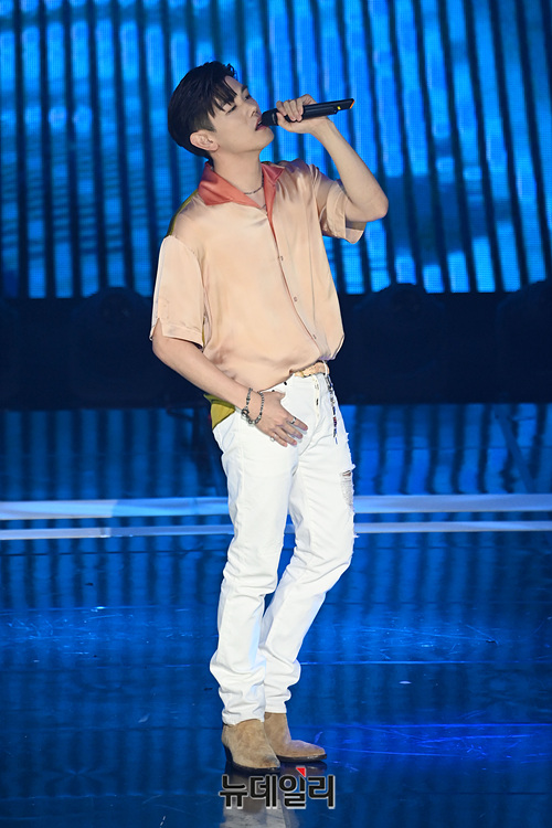 가수 에릭남이 4일 오후 서울 마포구 SBS 프리즘타워에서 열린 SBS MTV '더 쇼(THE SHOW)' 생방송에서 무대를 선보이고 있다.