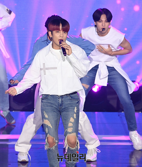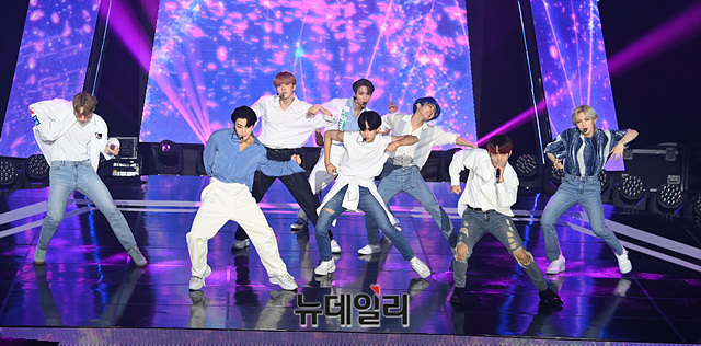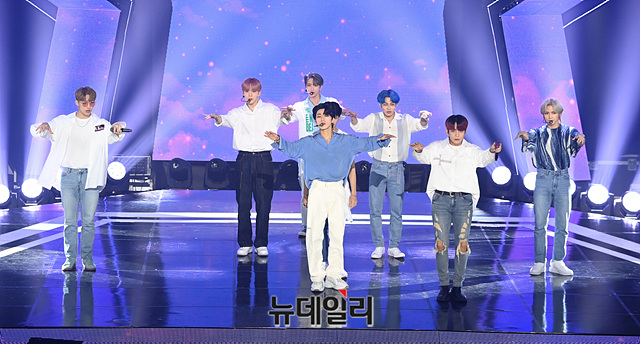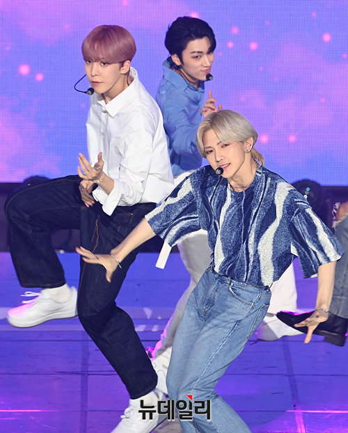 아이돌그룹 'ATEEZ(에이티즈)'가 4일 오후 서울 마포구 SBS 프리즘타워에서 열린 SBS MTV '더 쇼(THE SHOW)' 생방송에서 무대를 선보이고 있다.