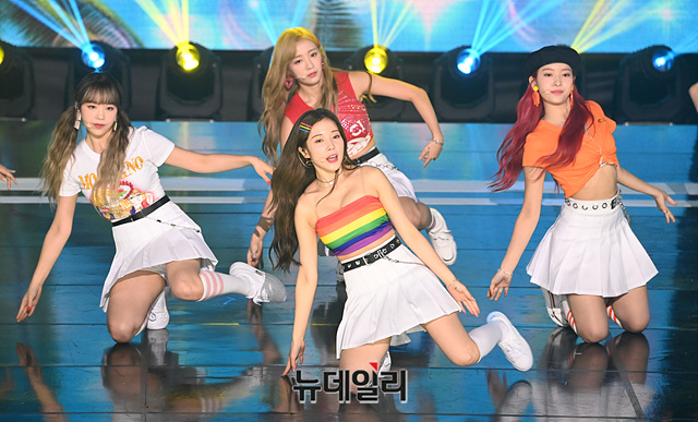 걸그룹 에이프릴이 4일 오후 서울 마포구 SBS 프리즘타워에서 열린 SBS MTV '더 쇼(THE SHOW)' 생방송에서 무대를 선보이고 있다.