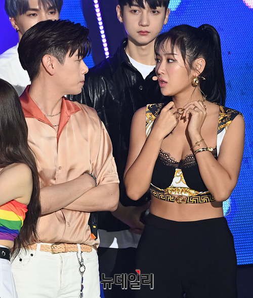 가수 소유와 에릭남이 4일 오후 서울 마포구 SBS 프리즘타워에서 열린 SBS MTV '더 쇼(THE SHOW)' 생방송에 참석해 자리하고 있다.
