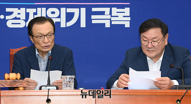 이해찬 더불어민주당 대표가 5일 오전 국회에서 열린 최고위원회의에서 모두발언을 하고 있다.