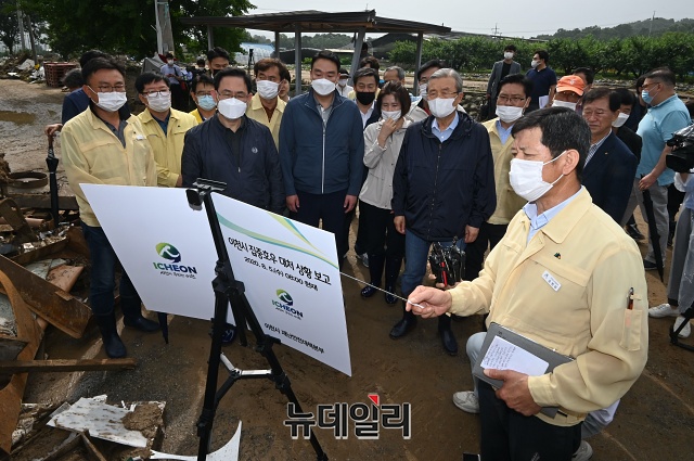 [포토] 통합당, 이천시 집중호우 피해 현장 방문