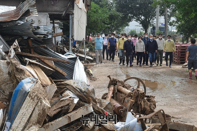 [포토] 수해 현장 살피는 김종인-주호영