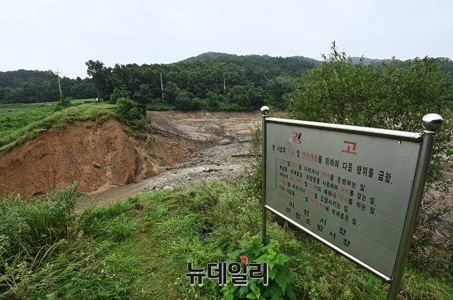 2일 경기권역에 집중호우가 내리면서 경기 이천 산양저수지 제방이 무너졌다. 담수량 6만 5,000여 톤의 물이 산양1리 마을을 덮쳐 침수피해를 입었다. 인명피해는 없었다. (경기 이천=권창회 기자)
