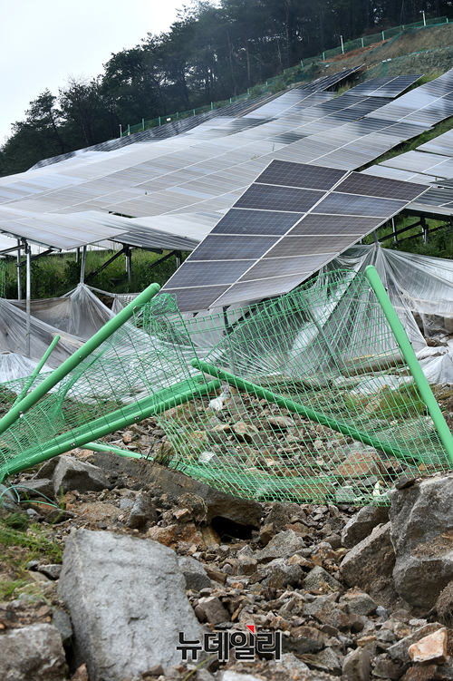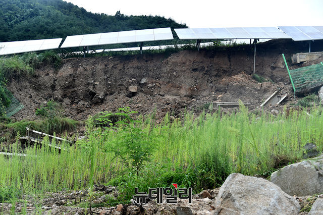 [포토] 폭우에 취약한 태양광 발전 또 무너져
