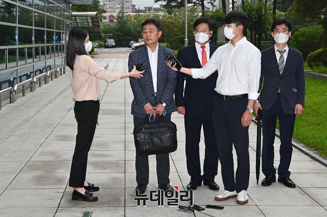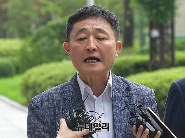 허인회 전 녹색드림협동조합 이사장이 7일 오전 서울 도봉구 서울북부지법에서 열린 구속전피의자심문(영장실질심사)에 출석해 취재진의 질문에 답하고 있다.