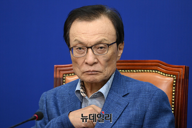 이해찬 더불어민주당 대표가 10일 오전 국회에서 열린 최고위원회의에 참석해 자리하고 있다.