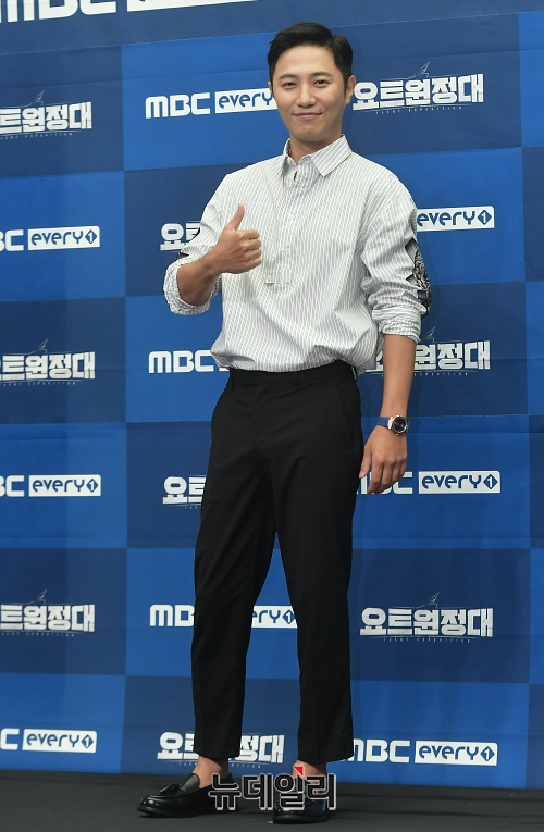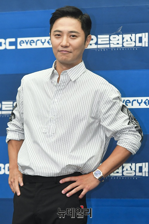 배우 진구가 12일 오전 서울 마포구 스탠포드 호텔에서 열린 예능 '요트원정대(연출 조범)' 제작발표회에서 포토타임을 갖고 있다.