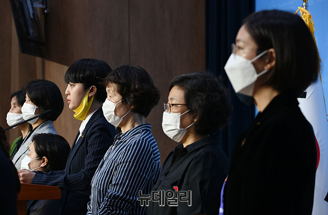 류호정 정의당 의원이 12일 오후 국회 소통관 기자회견장에서 성범죄 처벌 강화를 위한 형법 개정안 발의 기자회견을 갖고 있다.