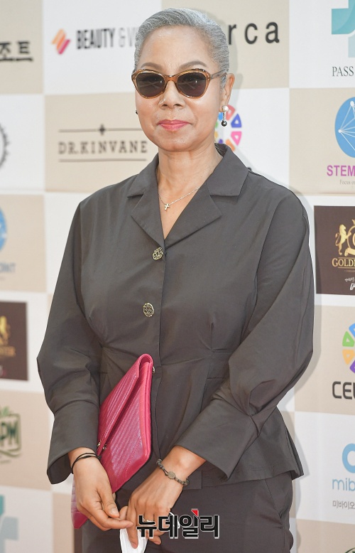 가수 인순이가 12일 오후 서울 강남구 라마다 호텔에서 열린 대한민국 예술문화인대상 시상식에서 포토타임을 갖고 있다.