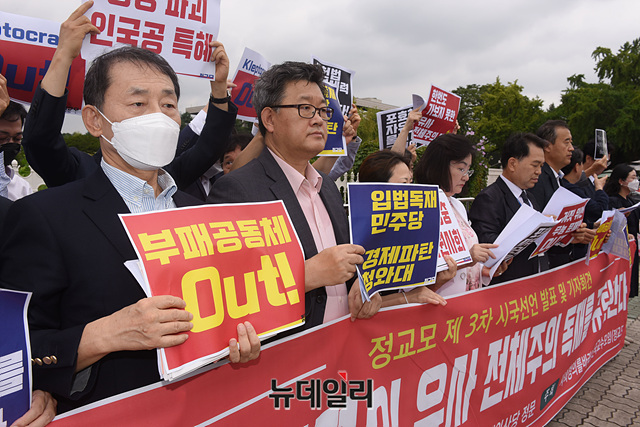 우리는 문재인정권이 불법적으로 감행한 공수처법의 통과, 사법부와 검찰의 시녀화, 국회의 ‘통법부화’에 의해 삼권분립에 입각한 입헌주의와 다원적 민주주의가 빈사(瀕死)의 상태에 빠졌음을 통탄한다. 21대 국회 상임위 구성에서의 협치의 말살, 절차의 무시 등 의회의 대정부 견제기능을 마비시켜 주권자인 국민의 공분(公憤)을 일으키고 차별금지법·역사왜곡금지법 등 반민주적 법률안을 남발, 강행을 예고함으로써 대한민국의 자유민주주의를 살해하고 있다. 아울러 공수처법 등 국가 사법질서의 근간이 되는 법률의 위헌성에 대한 판단도 미루고 있는 헌법재판관들은 역사의 죄인이 되지 않아야 할 것이다.