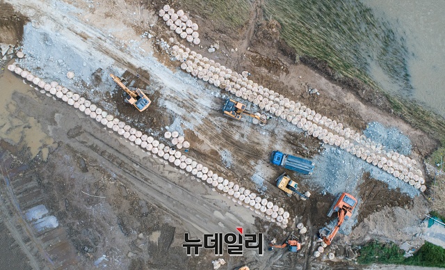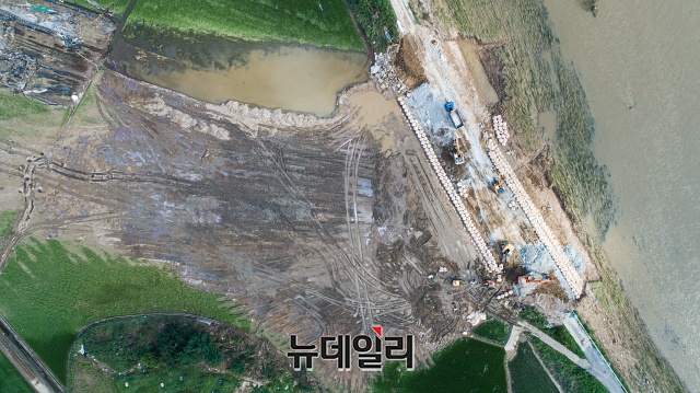 [포토] 기록적 폭우에 속절없이 찢어진 섬진강 둑