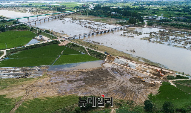 전북 남원은 지난 8일 기록적인 폭우로 인한 섬진강 둑 붕괴로 금지면, 대강면, 주생면 등 3개 마을이 물에 잠겨 피해를 입었다. 정부는 13일 오후 전북 남원, 전남 구례 등 11개 지역을 특별재난지역으로 선포했다. (전북 남원=권창회 기자)