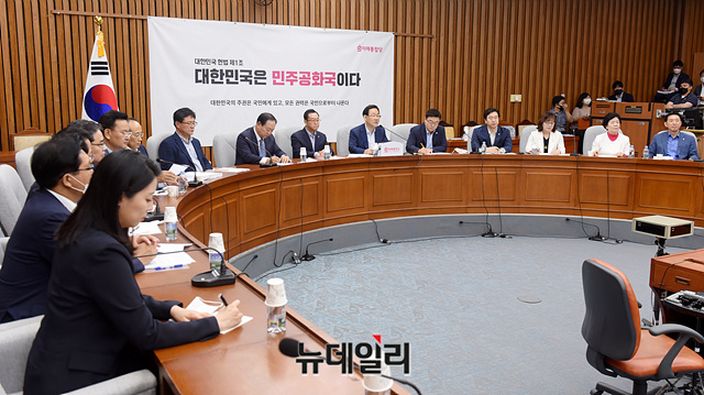 주호영 미래통합당 원내대표가 14일 오전 국회에서 열린 원내대책회의에서 모두발언을 하고 있다.주 원내대표는 "어제 탄핵 이후 처음으로 저희 당 지지율이 민주당 지지율을 추월했다는 여론조사가 하나 나왔다"며 "거대 여당의 힘으로 독주하고 밀어붙이면서 국민과의 소통에 소홀함이 없었는지, 야당과 협치는 안중에도 두지 않았던 게 아닌지 돌아봐 주길 부탁한다"고 말했다.이어 "당 차원의 수해복구 지원과 병행해서 다음 주부터 결산 국회가 시작되는데, 민생을 돌보는 국회가 될 수 있도록 야당에 부여된 역할과 책임을 다하겠다"고 밝혔다.
