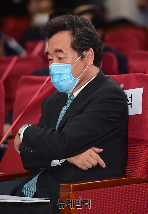더불어민주당 당대표에 출마한 이낙연 의원이 14일 오후 국회 의원회관에서 북한 개별관광 허용 등 남북교류 재개를 주제로 열린 토론회에 참석해 생각에 잠겨 있다.