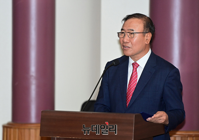 한상대 전 검찰총장이 14일 오후 국회 의원회관에서 '건국과 대한민국의 번영, 그리고 북한 자유화 방안'을 주제로 열린 건국 72주년 기념세미나 축사를 하고 있다.