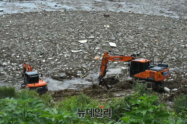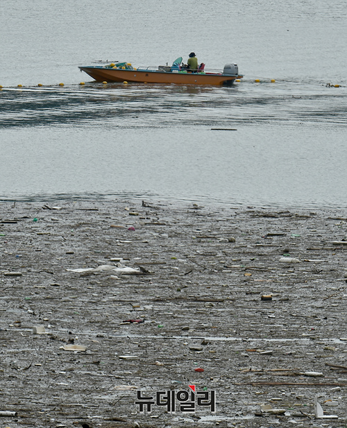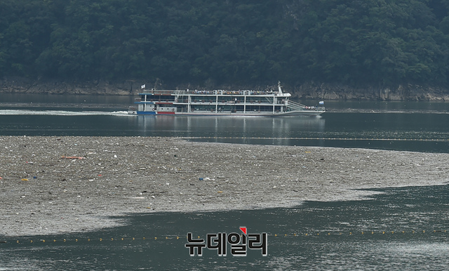충주호는 수도권 주민들의 식수원으로 국내에서 가장 큰 인공호수다. 현재는 폭우로 인해 상류에서 떠내려온 쓰레기들로 거대한 쓰레기 섬을 이루고 있다. 한국수자원공사는 충주호에 떠내려 온 부유 쓰레기의 양이 약 3만 m³에 이를 것으로 추산하고 있다. (충북 제천=이종현·권창회 기자)