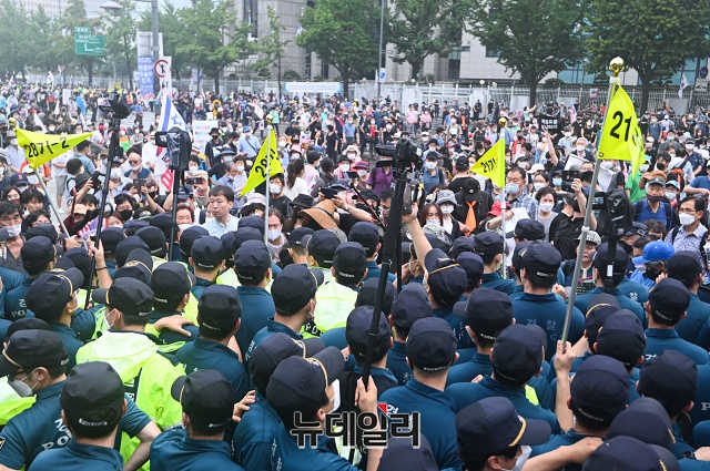 이날 집회는 오후 4시 30분께 마무리됐다. 집회 이후 청와대 방향으로 가두행진을 진행했지만 경찰이 청와대 입구를 막아 곳곳에서 충돌이 발생했다.
