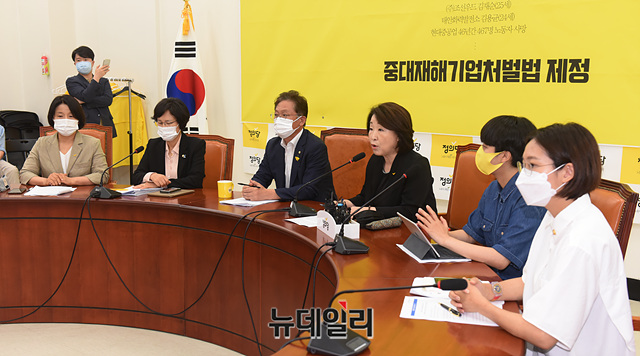 심상정 정의당 대표가 18일 오전 국회에서 열린 의원총회에서 모두발언을 하고 있다.