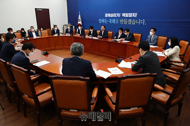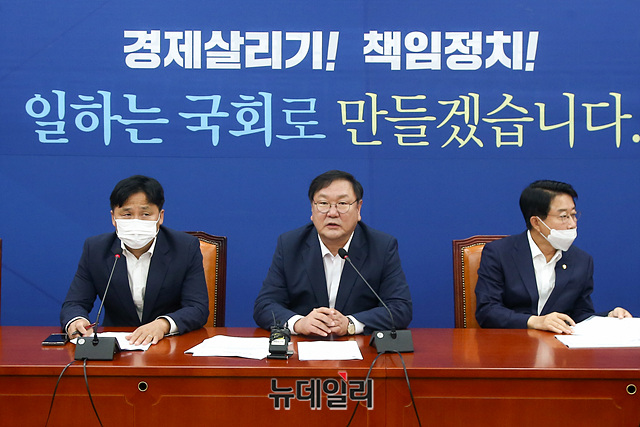 김태년 더불어민주당 원내대표가 18일 오전 국회에서 열린 원내대책회의에서 모두발언을 하고 있다.