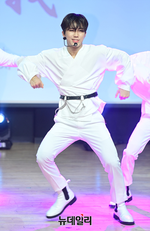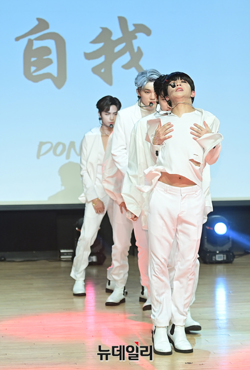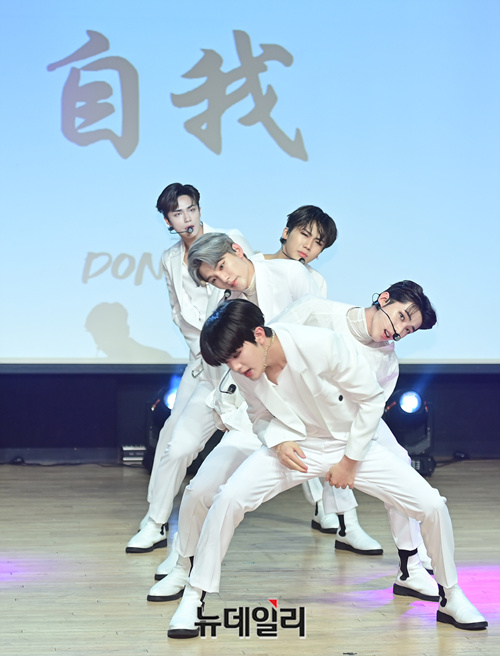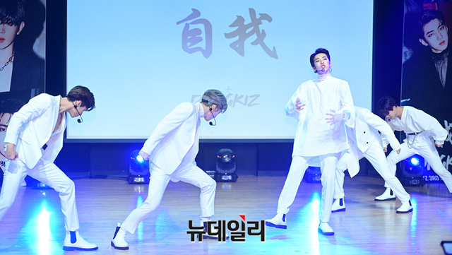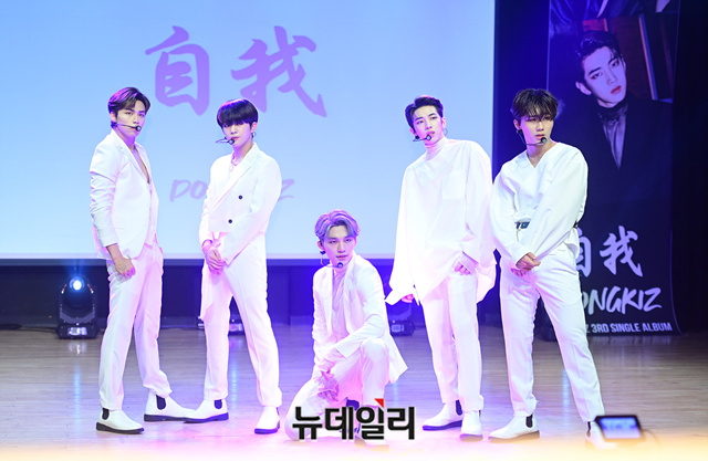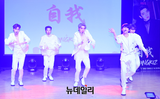 아이돌그룹 동키즈(Dongkiz)가 19일 오후 서울 강남구 일지아트홀에서 열린 3번째 미니앨범 '자아(自我)' 쇼케이스에서 타이틀곡 무대를 선보이고 있다. 이날 쇼케이스는 지난해 데뷔한 동키즈의 첫번째 쇼케이스 무대다.이번 앨범은 타이틀곡 '아름다워'를 포함해 3개 트랙으로 구성됐다.원대, 경윤, 문익, 재찬, 종형 5명의 멤버로 구성된 동키즈는 아시아에서 시작해 세계로 뻗어나가는 아이들이라는 의미를 담고 있다. 음원은 이날 정오 발매됐다.