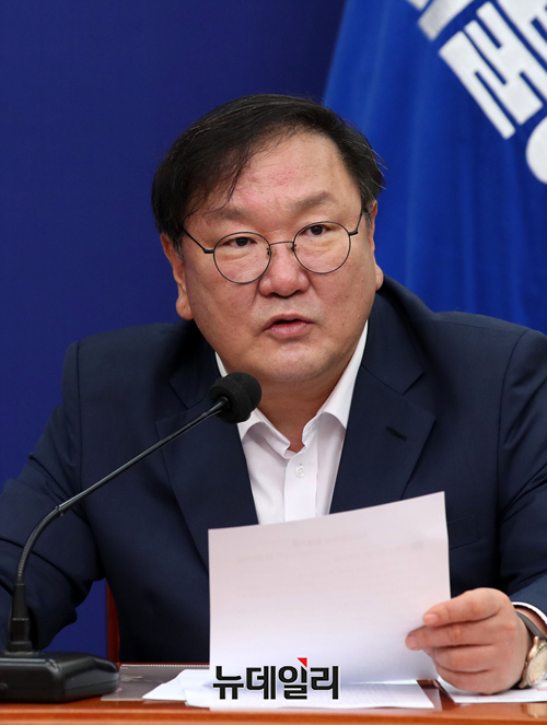 김태년 더불어민주당 원내대표가 19일 오후 국회에서 열린 최고위원회의에 참석해 모두발언을 하고 있다.