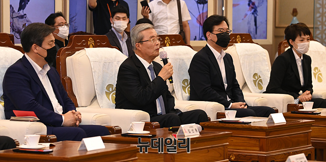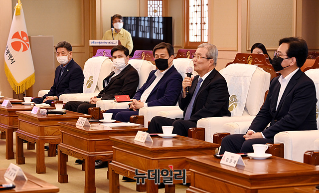 김종인 미래통합당 비상대책위원장이 19일 오후 광주 서구 광주광역시청 시장실에서 열린 간담회에서 인사말을 하고 있다.김 위원장은 "통합당이 앞으로 진로를 결정하는데 광주와 호남을 그대로 방치할 수 없었다"며 "미래를 이끌어가는 정당으로서 모든 국민의 화합을 도모하고 우리당이 새롭게 태어날 수 있다는 각오로 광주를 찾았다"고 말했다.간담회에는 김 위원장, 김선동 통합당 사무총장, 송언석 비서실장, 김은혜 대변인, 이용섭 광주광역시 시장, 김종효 행정부시장, 조인철 문화경제부시장 등이 참석했다.김 위원장은 이날 오전 광주 5.18민주묘지를 찾아 오월 영령들에게 헌화하고 참배했다. (광주=박성원 기자)