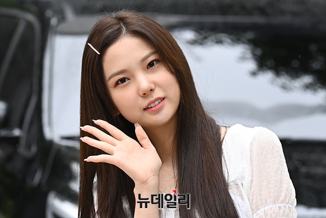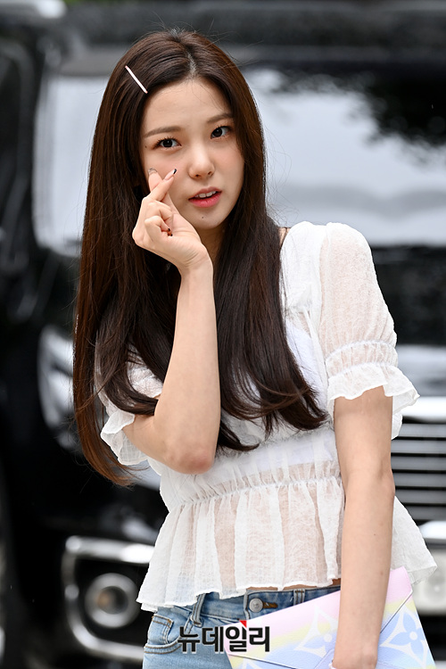 걸그룹 CLC 최유진이 21일 오후 서울 강서구 iHQ 미디어에서 진행된 CUBETV 예능 프로그램 '큐브통신' 녹화 전 포토타임을 갖고 있다. '큐브통신'은 아티스트의 새로운 매력을 탐구하는 예능 프로그램이다.