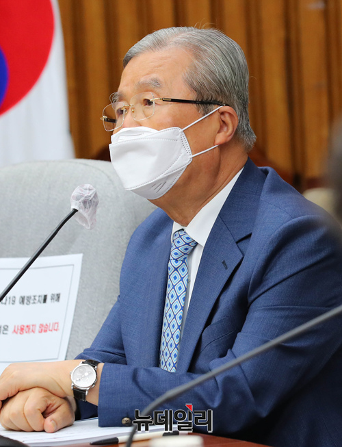 김종인 미래통합당 비상대책위원장이 21일 오전 국회에서 열린 미래통합당 시도당위원장 회의에 참석해 현안관련 발언을 하고 있다.