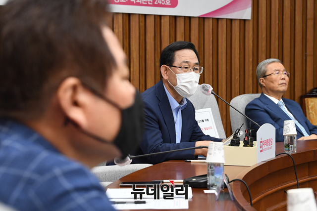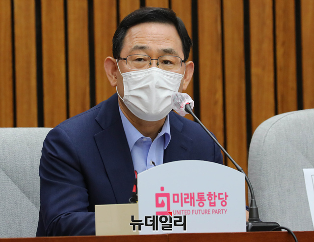 주호영 미래통합당 원내대표가 21일 오전 국회에서 열린 미래통합당 시도당위원장 회의에 참석해 현안관련 발언을 하고 있다.