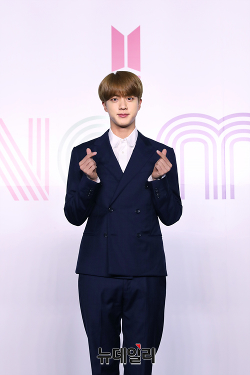 방탄소년단(BTS) 진이 21일 디지털 싱글 '다이너마이트'(Dynamite) 발매를 앞두고 열린 온라인 기자간담회에 참석해 포즈를 취하고 있다.
