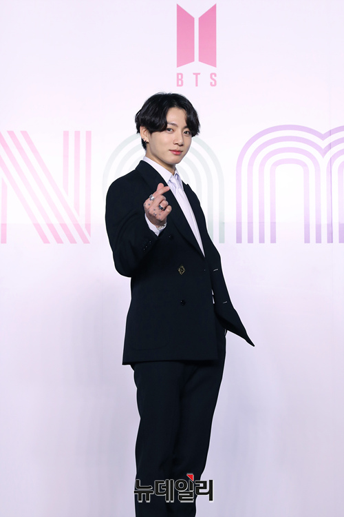 방탄소년단(BTS) 정국이 21일 디지털 싱글 '다이너마이트'(Dynamite) 발매를 앞두고 열린 온라인 기자간담회에 참석해 포즈를 취하고 있다.