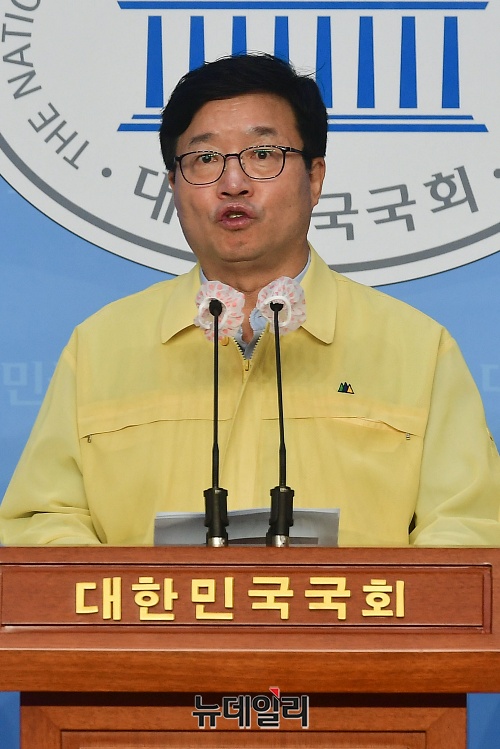 염태영 더불어민주당 최고위원 후보가 24일 오전 국회 소통관에서 지지호소 기자회견을 갖고 있다.