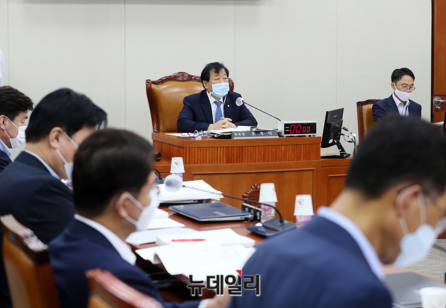 윤후덕 국회 기획재정위원회 위원장이 24일 오전 국회에서 열린 기재위 전체회의에서 의사봉을 두드리고 있다. (사진=국회사무처)