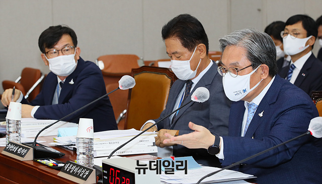노영민 대통령 비서실장이 25일 오후 국회에서 열린 운영위원회 전체회의에서 발언을 하고 있다.