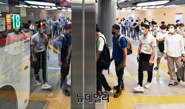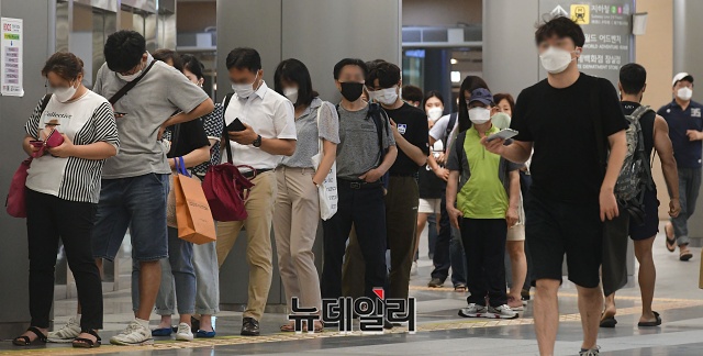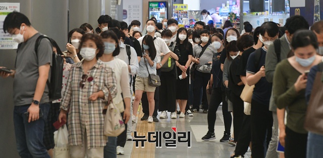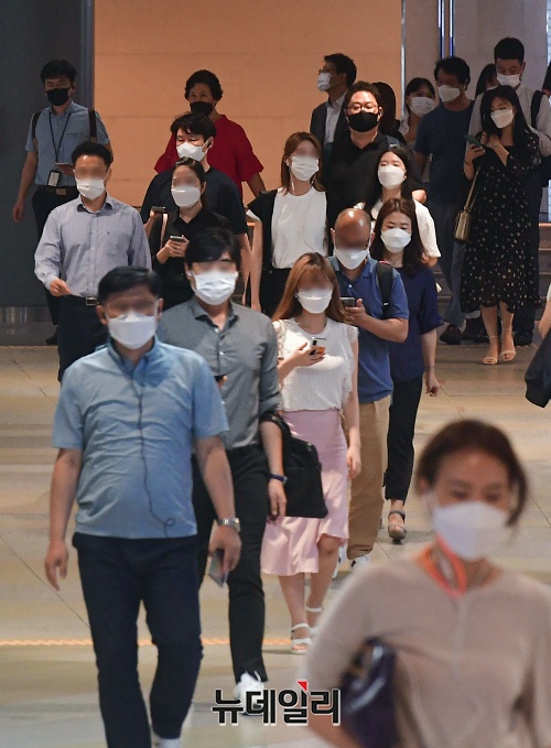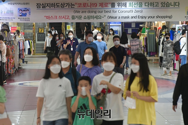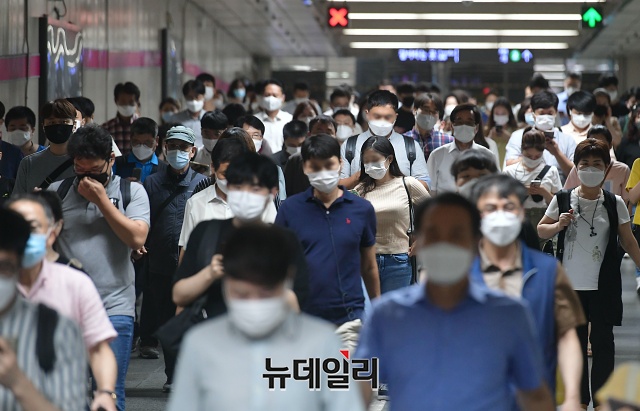 '코로나19(중국 우한 폐렴)'로 '사회적 거리두기 2단계'가 시행 중인 25일 오후 서울 송파구 잠실역 인근에서 시민들이 마스크를 착용하고 퇴근하고 있다.최근 2주간(11일~24일) 코로나19 신규 확진자는 3,231명으로 일 평균 230명이다. 이는 정부가 제시한 사회적 거리두기 3단계 격상 기준에 해당한다.정부는 25일 "이번 주가 사회적 거리두기 3단계 격상 여부를 결정짓는 중대한 고비"라며 "사회적 거리두기 3단계가 시작되면 일상이 정지되고 일자리가 무너지는 어려움을 감내해야만 한다"고 경고했다.