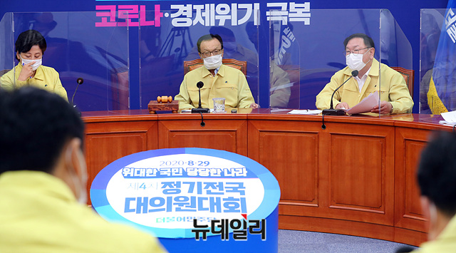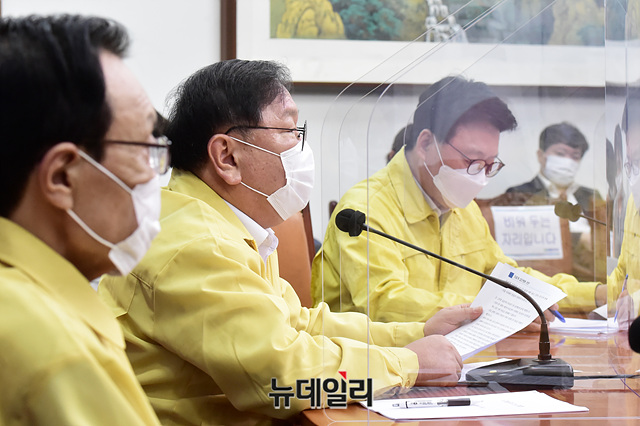 김태년 더불어민주당 원내대표가 26일 오전 국회에서 열린 최고위원회의에서 모두발언을 하고 있다.