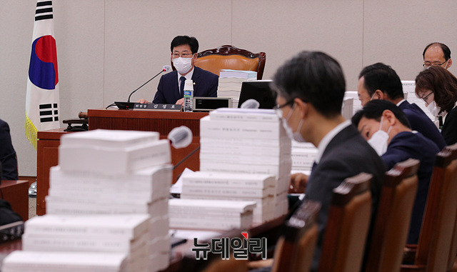김정호 국회 산업통상자원중소벤처기업위원회 예산결산심사소위원장이 26일 오전 국회에서 열린 산자위 예산결산 소위원회에서 개회를 선언하고 있다.