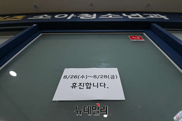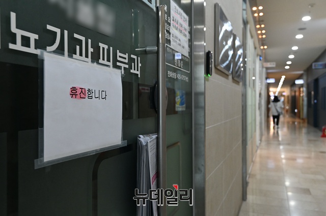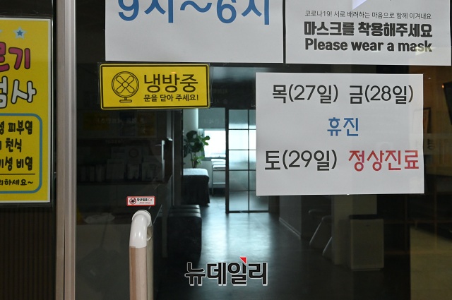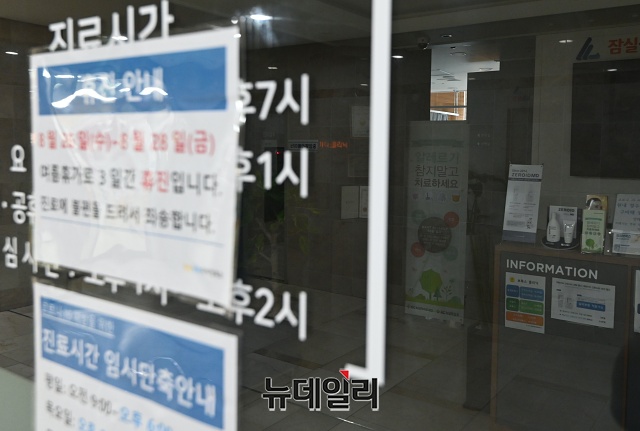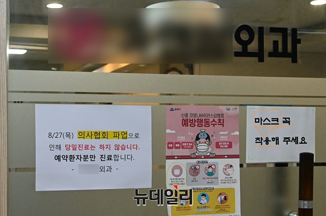 제2차 전국의사총파업 둘째날인 27일 오후 서울 송파구의 한 병원에 휴진 안내문이 붙어있다. 보건복지부는 27일 낮 12시 기준으로 전국 의원급 의료기관 3만2,787개소 중 8.9%인 2,926개소만 집단휴진에 참여했다고 밝혔다.
