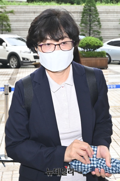 '환경부 블랙리스트' 의혹을 받고 있는 김은경 전 환경부 장관이 28일 오전 서울 서초구 서울중앙지법에서 열린 공판에 출석하고 있다.