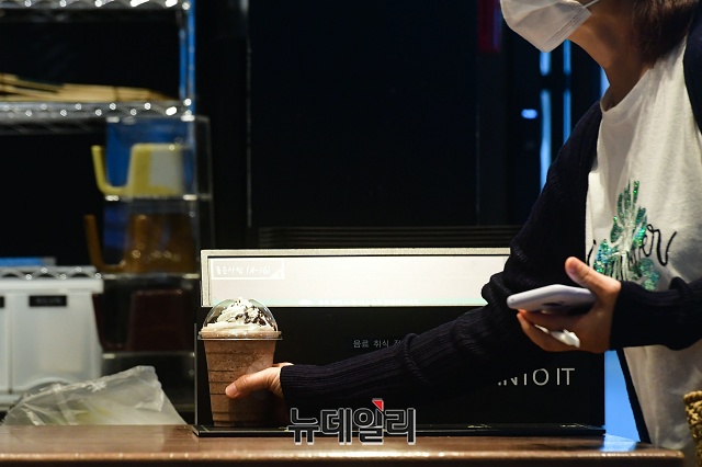 프랜차이즈형 카페는 매장에서 음료를 마실수 없고, 포장과 배달만 가능하다.