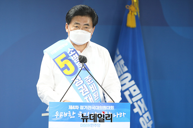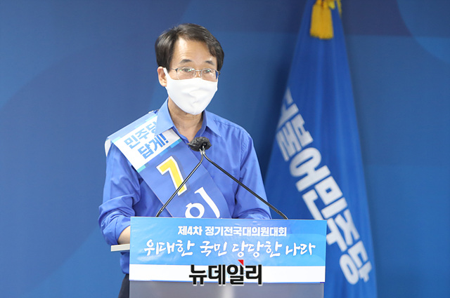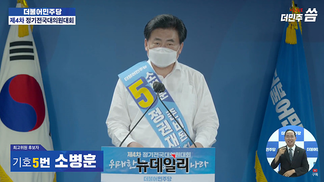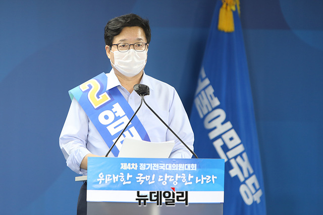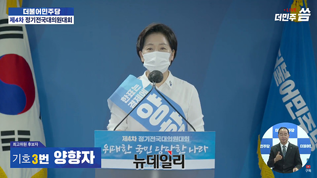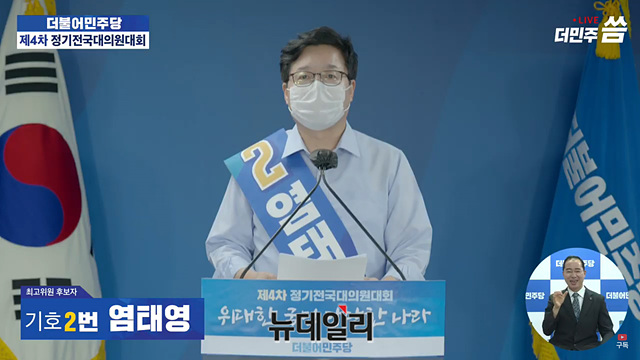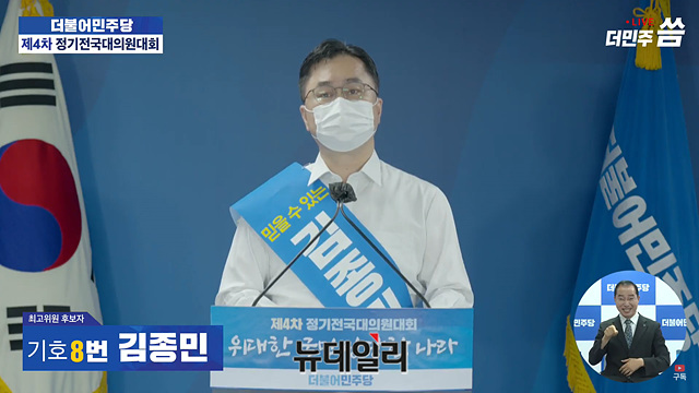 더불어민주당 최고위원 후보자들이 29일 오후 서울 여의도 더불어민주당 당사에서 열린 '제4차 전국대의원대회'에서 정견발표를 하고 있다.이번 전당대회는 '코로나19(중국 우한 폐렴)' 확산 방지를 위해 민주당 유튜브 채널 '씀TV'를 통해 온택트(온라인을 통한 비대면)방식으로 진행된다.당대표로는 이낙연·김부겸·박주민(기호 순)이 나섰다. 이어 최고위원 대표로는 신동근·염태영·양향자·한병도·소병훈·노웅래·이원욱·김종민이 나섰다.이날 각 후보들의 연설이 끝나면 대의원과 권리당원 투표 집계가 시작된다. 결과는 오후 5시쯤 나올 것으로 전망된다. (사진=더불어민주당)