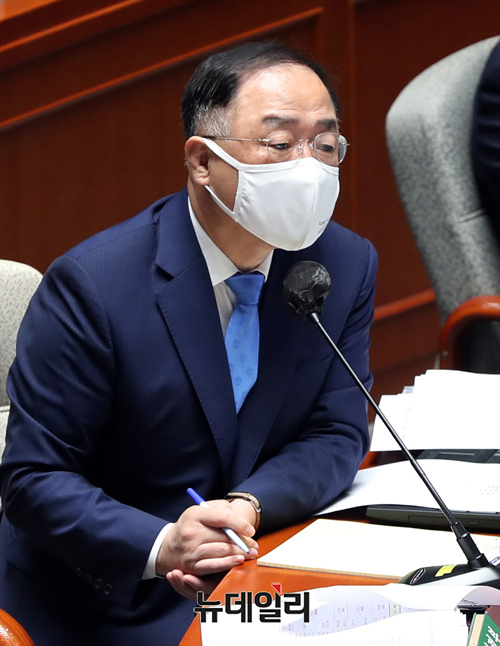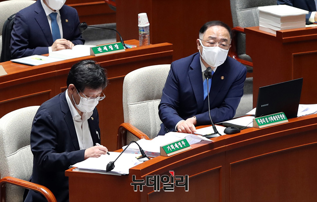 홍남기 경제부총리 겸 기획재정부장관이 31일 오전 국회에서 열린 예산결산특별위원회 부별심사에서 발언을 하고 있다. (사진=국회 사무처)