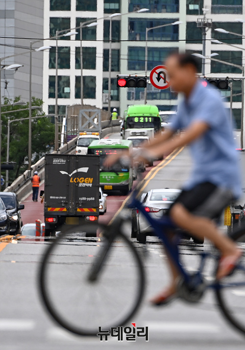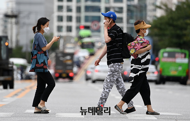 태풍 마이삭이 북상하고 있는 31일 오후 서울 영등포구 도림사거리에 지열로 인한 아지랑이가 피어오르고 있다.