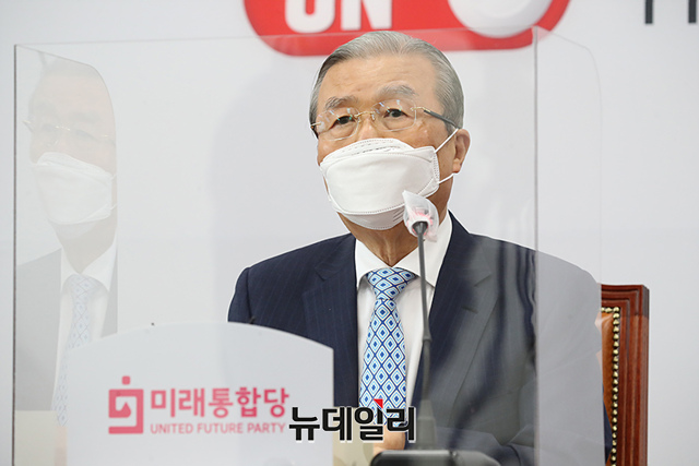 김종인 미래통합당 비대위원장, 주호영 원내대표 등 당 지도부가 31일 오전 국회에서 열린 온라인 의원총회에서 정강정책과 당명 개정 관련 사항을 Youtube '오른소리'를 통해 당 소속 국회의원들에게 보고하고 있다. (사진=미래통합당)