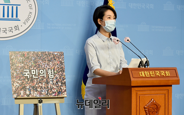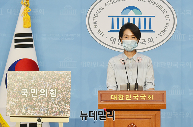 [포토] 새로운 당명 '국민의힘' 관련 브리핑 하는 김수민 홍보본부장